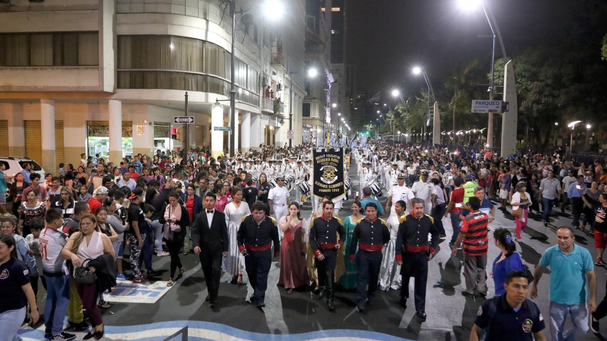 Pero aquel momento fue uno de los seis pasajes que la noche del lunes se reconstruyeron en lugares ubicados en un radio de siete manzanas del centro histórico, donde en aquel Guayaquil de los años 20 del siglo XIX estaban los batallones de Artillería (Plaza de la Administración), Milicias Urbanas (antiguo hotel Crillón), el cuartel Granaderos de Reserva (Palacio Municipal) y la casa de Villamil (un parqueadero en la calle Elizalde), el sitio donde a eso de las 19:00 se dio el baile con el que los próceres disfrazaron el levantamiento.