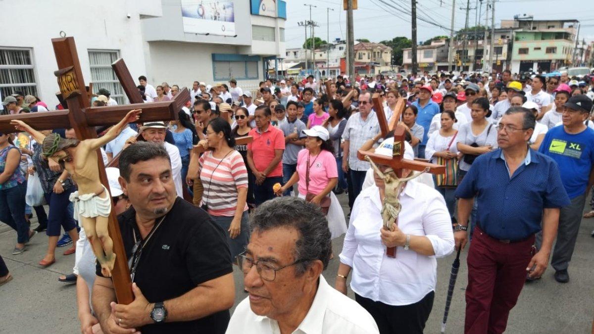 Con camisetas blancas, cruces de madera, retratos de Cristo, estatuillas bajadas de las paredes de las iglesias y echadas al hombro, y un sol que no terminó de salir hasta pasado el mediodía, para suerte de los fieles, decenas de iglesias del norte de Guayaquil recordaron el Viernes Santo con caminatas que se extendieron por varias horas de la mañana.