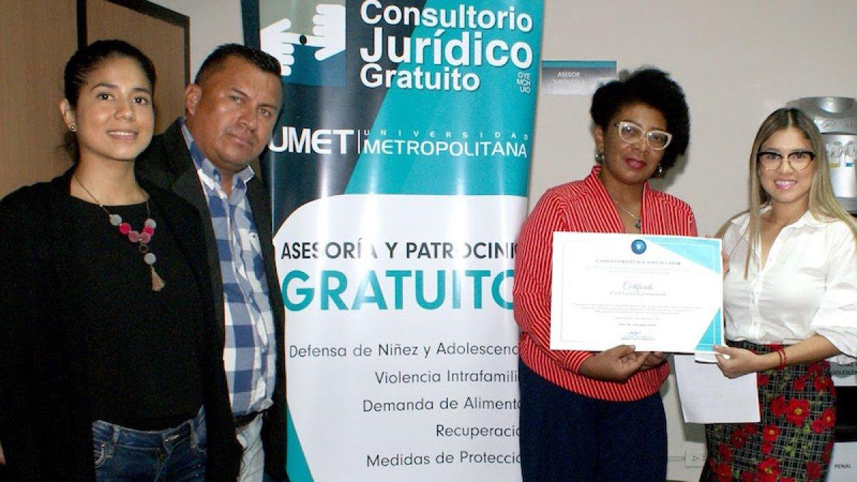 La defensora pública provincial del Guayas, Cindy Cedeño, entregó el certificado de renovación de funcionamiento del Consultorio Jurídico Gratuito (CJG) de la Universidad Metropolitana, sede Guayaquil, luego de verificar el cumplimiento de los requisitos correspondientes.