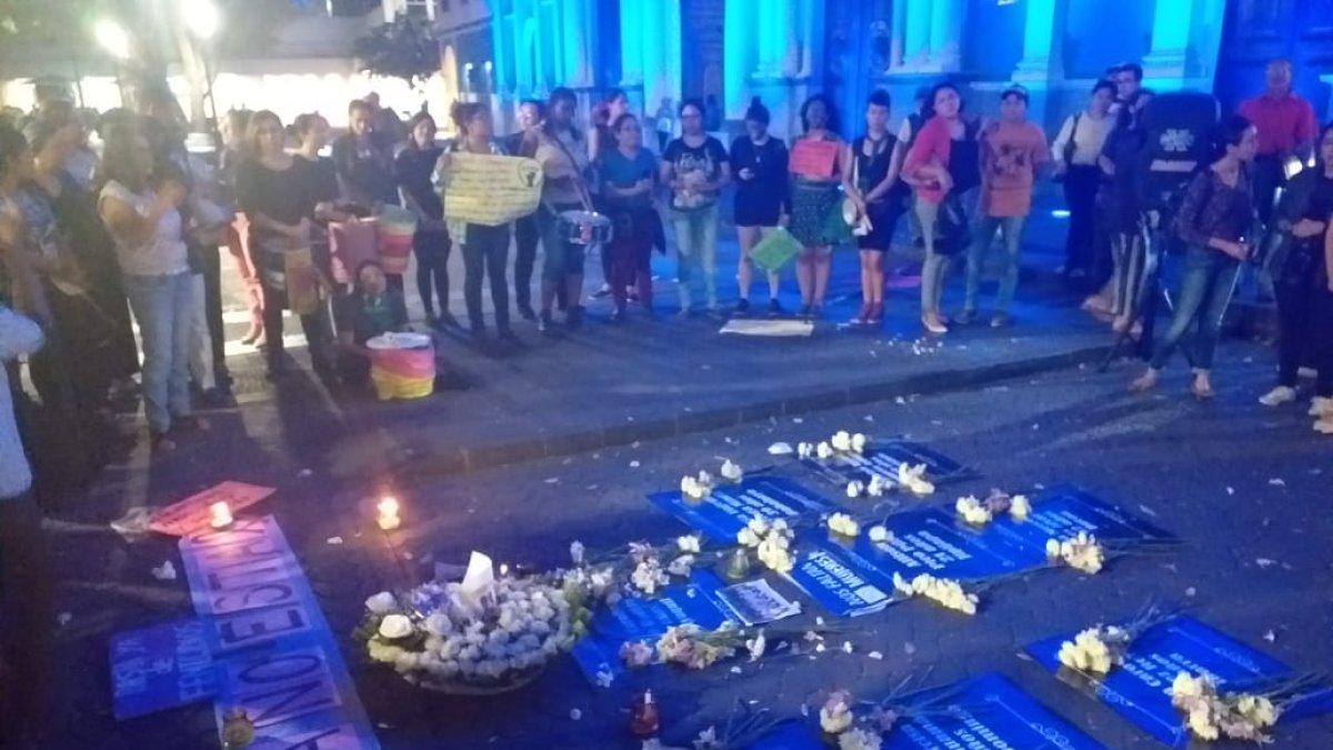 ¡Si es con una, es con todas!, ¡el machismo las asesinó! y ¡vivas las queremos!, fueron algunas de las frases que coreaban decenas de mujeres la noche de este lunes 3 de junio de 2019, en la Plaza San Francisco, en el centro de Guayaquil.