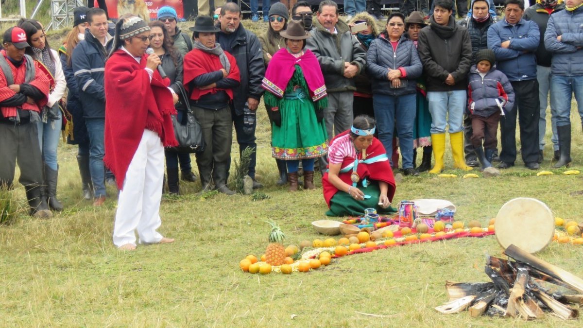 El festival inició en las cercanías de las lagunas Magtayán y Cubillín, con un ritual sagrado a cargo de la Mama Valeriana Anahuarqui, yachak de Chimborazo. Ella trazó un círculo con piedras con cuatro entradas delimitadas por plantas nativas; dentro dibujó una media luna, llena de maíz, y ubicó la representación de los cuatro elementos: yaku (agua), waira (viento), allpha, (tierra) y nina (fuego), además de varios inciensos y hojas de tabaco para la oración. “Aquí, a los pies de la laguna, damos gracias por la vida, estamos en tiempo femenino, de nuestra Mama Quilla (Luna), tiempo de siembra, y damos gracias a nuestro Pachacama, y por esas aves, su sacrificio, para que estemos bien”, señaló la yachak.