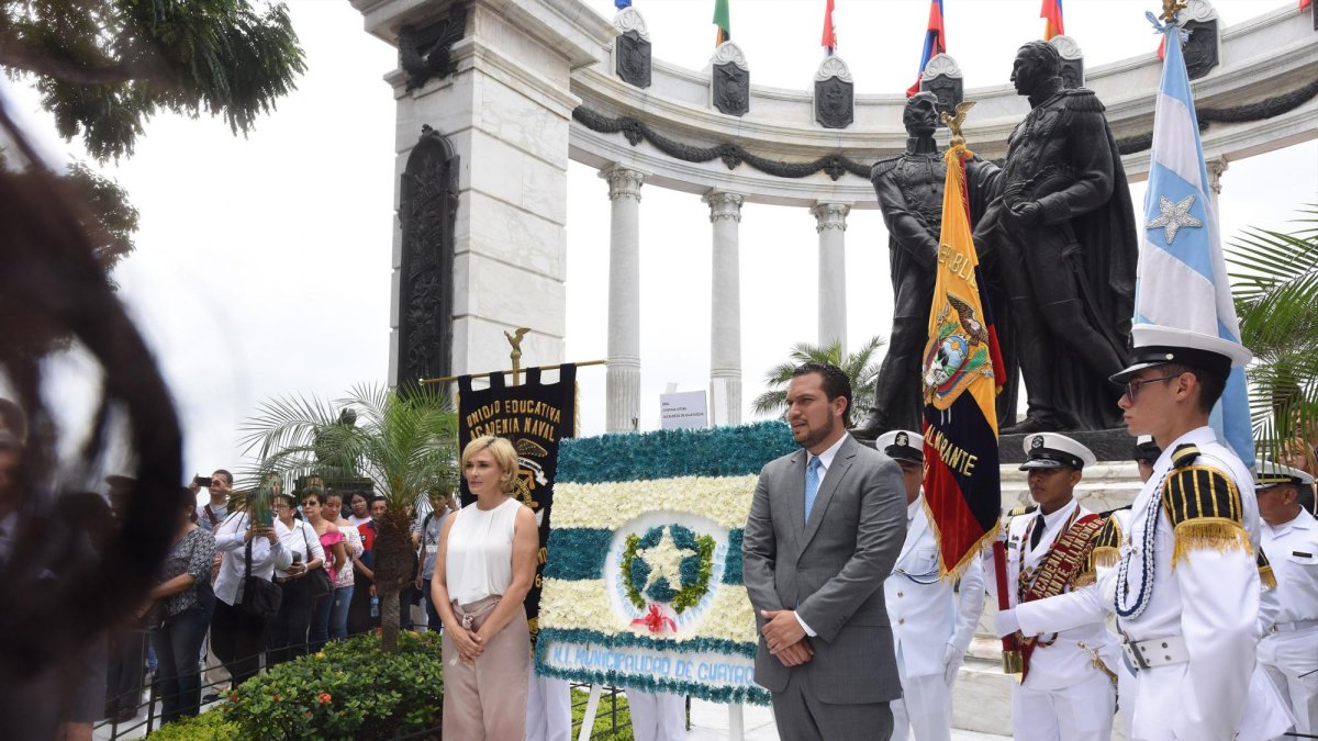 En homenaje al aniversario de Fundación de Guayaquil, las autoridades locales y nacionales realizaron este 25 de julio el tradicional acto cívico de colocación de ofrendas florales en dos puntos emblemáticos de la urbe.