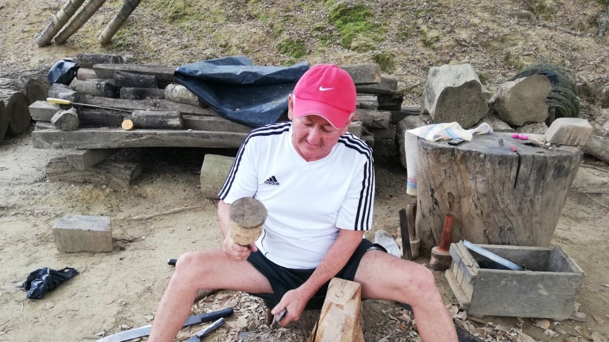 En un rincón de su propiedad, Mieles ha armado una especie de taller. Bajo la sombra de un árbol, toma sus herramientas y empieza a darle forma a los troncos de madera, hasta convertirlos en una montura. Usa machete y suela para darle el acabado y forma, serrucho para marcar y las llamadas macetas para golpear lentamente.
