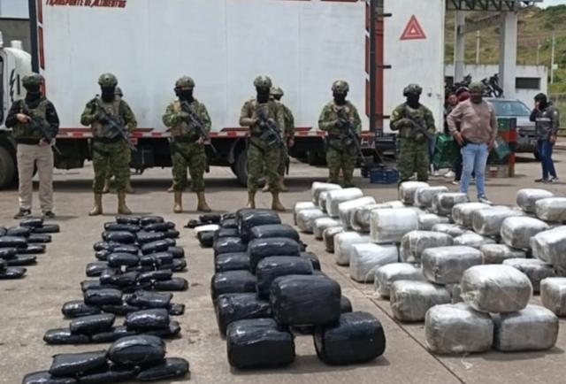 El Ejército ecuatoriano decomisó 530 kilos de marihuana que eran transportados en un vehículo que circulaba por una carretera de la provincia de Carchi, en la frontera con Colombia, y detuvo a su conductor, presuntamente vinculado a redes de narcotráfico que operan en ambos países, informó este lunes la institución.