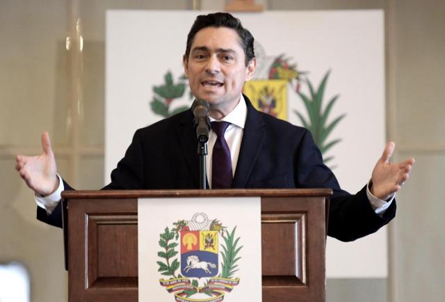 Carlos Vecchio, el representante del líder opositor Juan Guaidó en Washington, habló en una conferencia en la sede de la Organización de Estados Americanos (OEA), mientras persiste el punto muerto para la entrega de ayuda al país, afectado por una graves crisis económica y política.