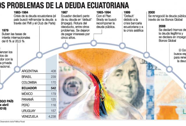 Ecuador tiene problemas de deuda externa, aproximadamente, cada década (ver gráfico), por lo menos desde 1970, asegura Jaime Carrera, director del Observatorio de la Política Fiscal.