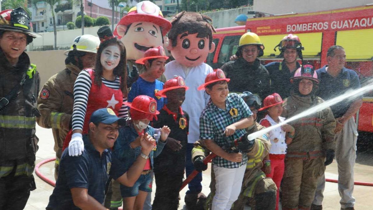 “A más de enseñar cómo actuar en casos de incendios, el mensaje que queremos trasmitirle a los niños es que los bomberos somos sus amigos”, precisó Jhon Saltos, capitán de bomberos.