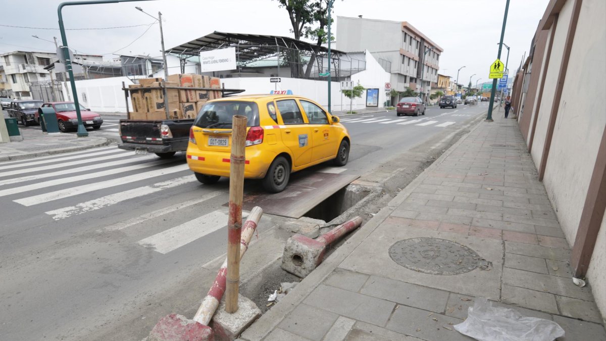 Trabajadores de Obras Públicas del Municipio cubrieron los agujeros con láminas metálicas.