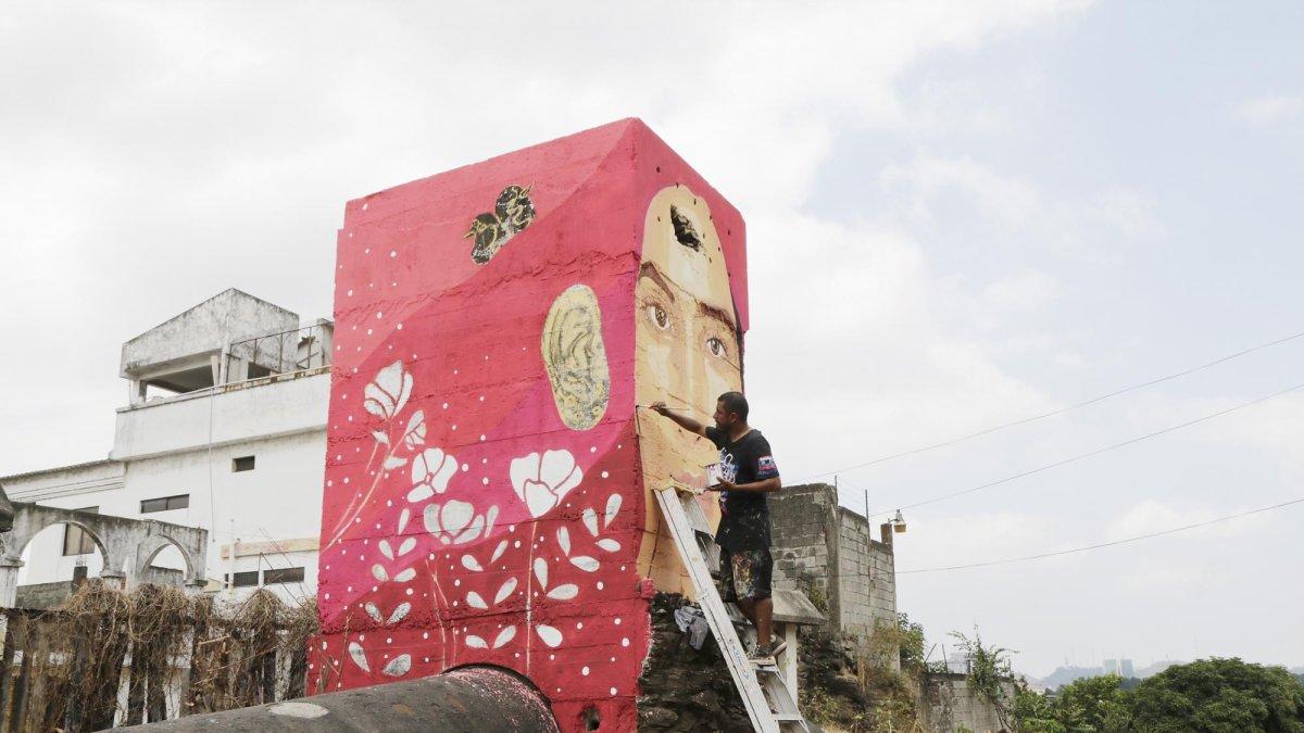 “Voy a pintar los sitios más desolados porque con la pintura no renovamos solo las fachadas, sino que el barrio, con ella, tiene un ambiente más agradable y hasta seguro”, explica Peña, autor de los murales que ahora ha empezado a trazar en la manzana 130 de Urbanor, en el norte de Guayaquil, cerca del bosque protector Palo Santo.