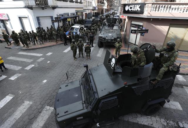 Integrantes de las Fuerzas Armadas custodian la ciudad este miércoles, en Otavalo (Ecuador).Efe