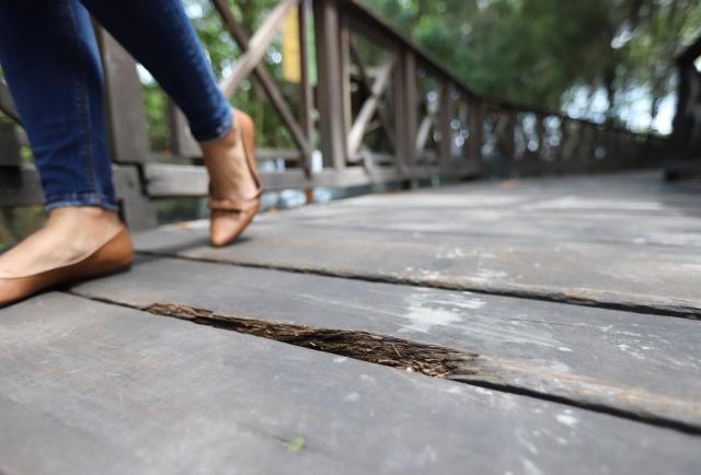 Tablas carcomidas, adoquines salidos y letreros borrosos marcan el sendero. Tres botellas plásticas flotan sobre el tramo de estero donde residen los cocodrilos. Vasitos descartados y platos plásticos se posan sobre mesas antiguas en la casa de hacienda San Juan y la Casa de Campo. No hay quien lo impida.