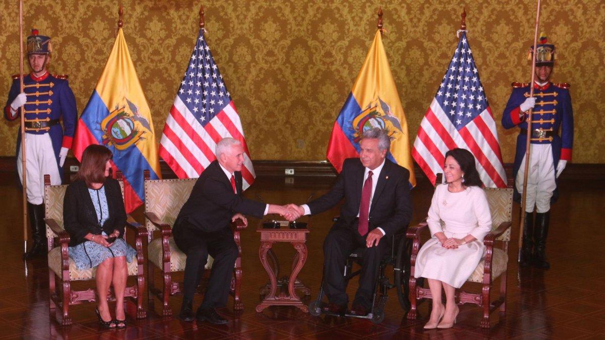 Si su objetivo es bloquear a Nicolás Maduro, la gira latinoamericana de Mike Pence no tuvo uno de sus mejores días en Quito. De Lenín Moreno no consiguió una palabra sobre Venezuela que el presidente ecuatoriano no hubiera dicho ya, o sea casi nada. Pero dejó un donativo de un millón y medio para la lucha anticorrupción; ofreció otro de tres y medio contra el narcotráfico; celebró la suerte de deshielo que se abre para las relaciones entre los dos países luego de “diez años de dificultades”; apreció el altar barroco que Sixto Durán mandó a armar junto a la sala de banquetes y se fue, encapsulado, rumbo a Guatemala. Tiempo de permanencia en Carondelet: tres horas.