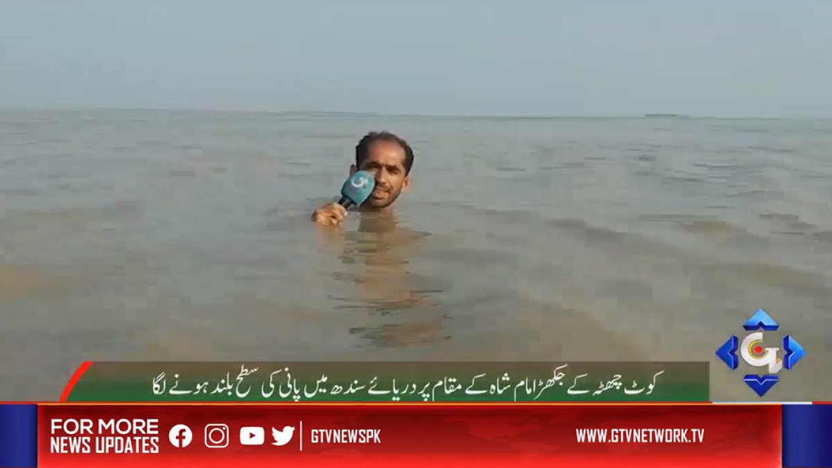 Llevó al máximo su compromiso con la audiencia. A Azadar Hussain, periodista pakistaní que estaba reporteando sobre una fuerte inundación en la provincia de Punvam, en Pakistán, no le importó que el agua llegara hasta su cuello para cubrir el fenómeno que azotaba al lugar.