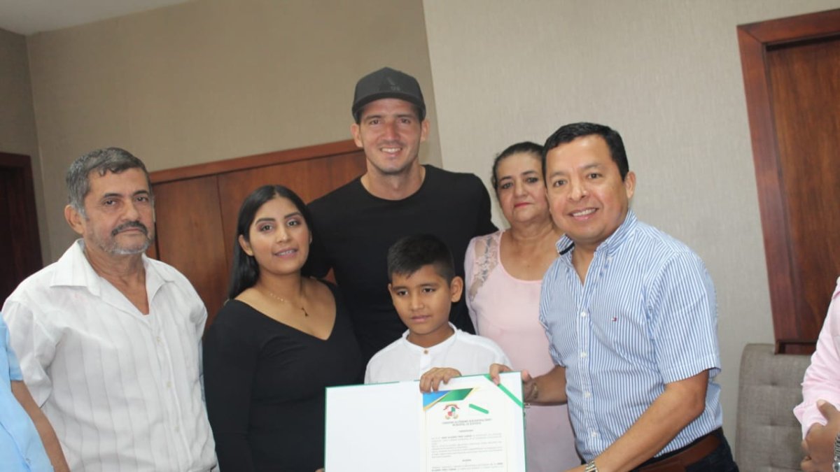 Pinos, emocionado, dijo que no se esperaba el homenaje y le da mucha alegría que su ciudad le de ese reconocimiento.