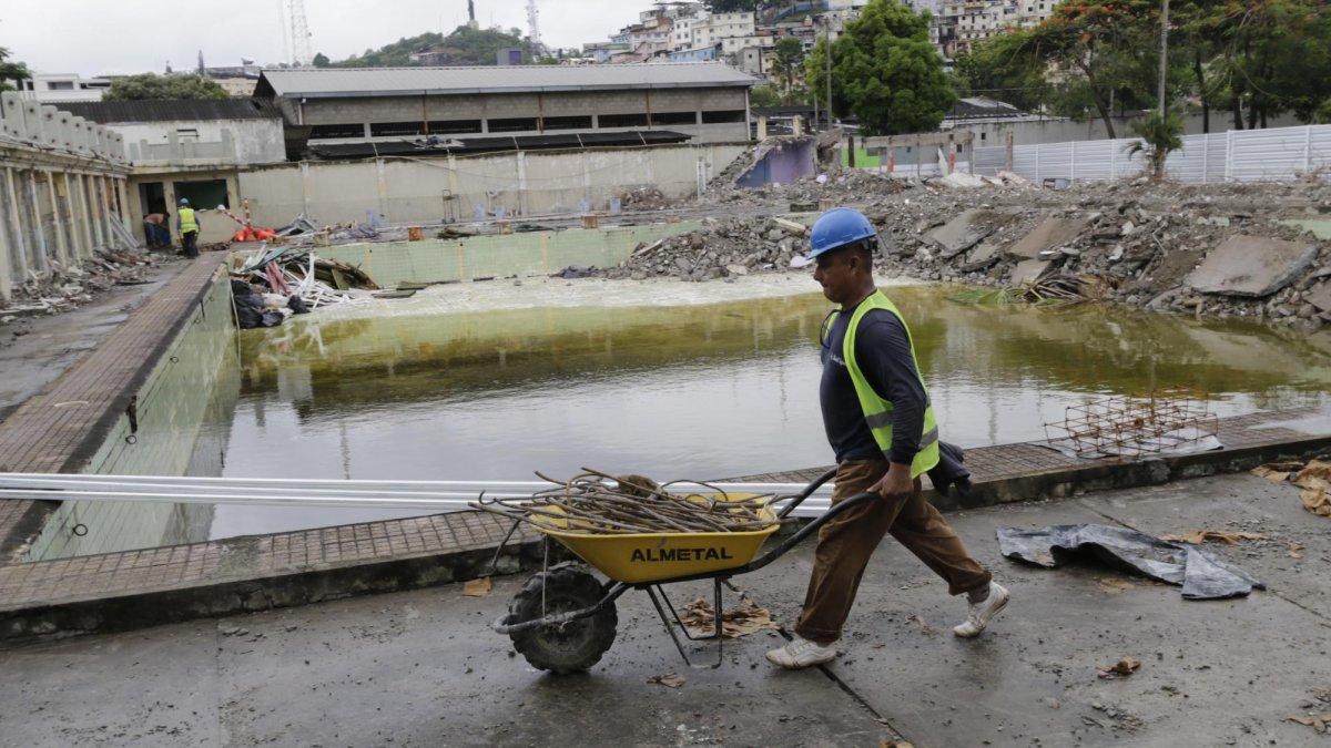 Lo nuevo: hay varillas de hierro aglomeradas, maquinarias que derrumban los vestidores o las plataformas que servían para darse de clavados y el agua verde de la antigua piscina meciéndose con cada remezón esperando su cierre definitivo.