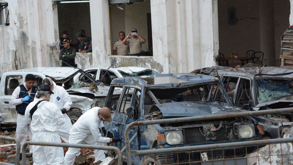 El fiscal Wilson Toainga investiga la destrucción del destacamento policial de San Lorenzo, en Esmeraldas, con un coche bomba el 27 de enero.
