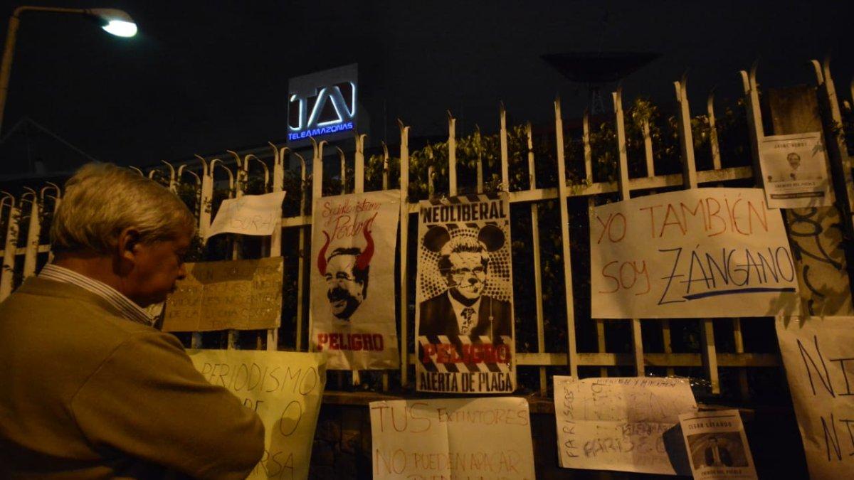 Simpatizantes del anterior Gobierno realizaron un plantón en las afueras del canal Teleamazonas.