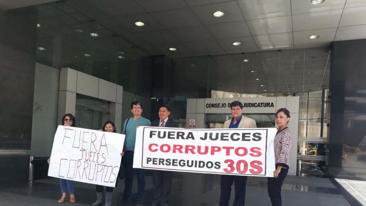 Integrantes de la mesa por la Verdad y la Justicia hicieron un plantón en el Consejo de la Judicatura (CJ) para pedir que se sancione a los jueces corruptos. Pidieron que se tome en cuenta el informe del grupo que investigó la actuación de los judiciales en casos considerados ‘políticos’.