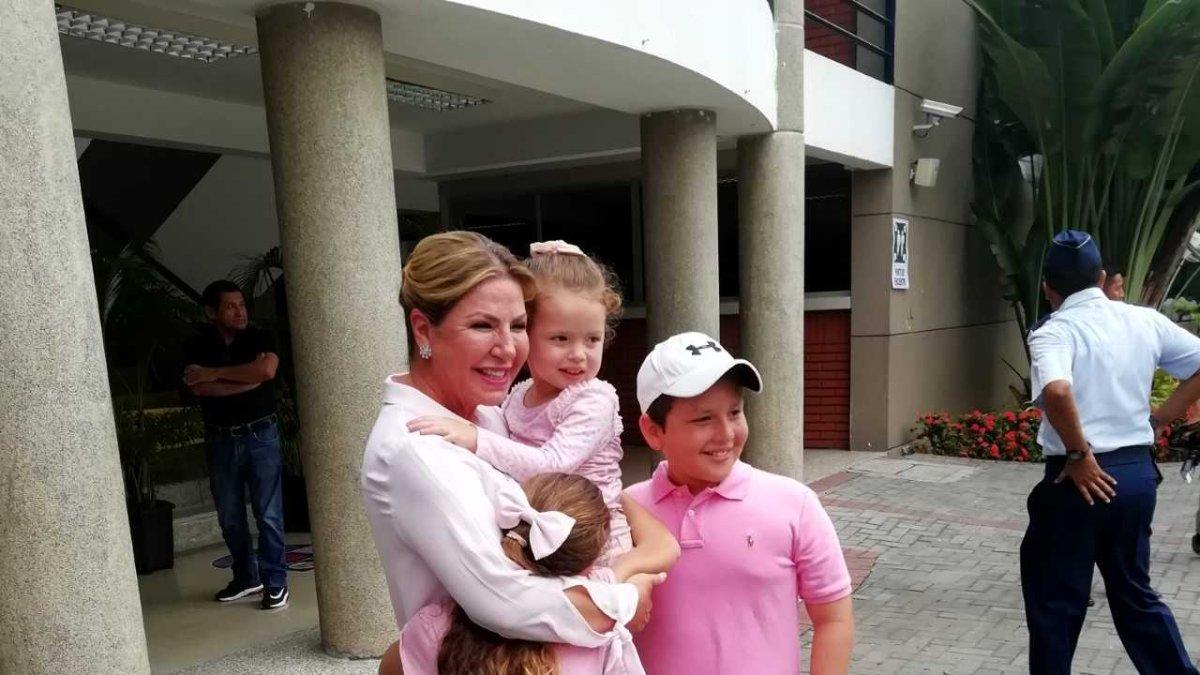 Ugarte, quien llegó vestida con una blusa color rosa, al igual que sus nietos, tras depositar su papeleta, se dirigió al colegio Ecomundo, también en La Puntilla, para acompañar a votar a Chiriboga y luego a Guillermo Lasso, líder del partido, quien lo haría en Guayaquil.