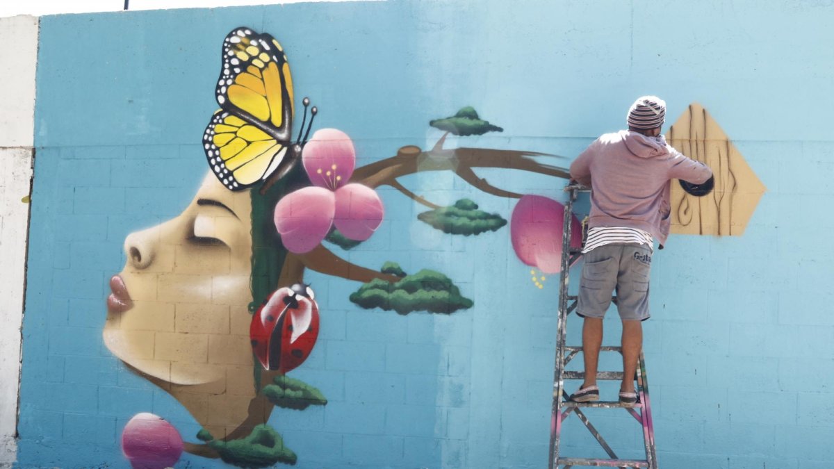 El evento, que busca fortalecer los lazos entre la comunidad y paralelamente transformar el espacio, cuya transformación empezó ya el año pasado, ha reunido a decenas de muralistas y pintores que están repletando de figuras y mensajes positivos las paredes. En el sitio se puede ver a decenas de artistas con brochas, témperas, telas, madera.