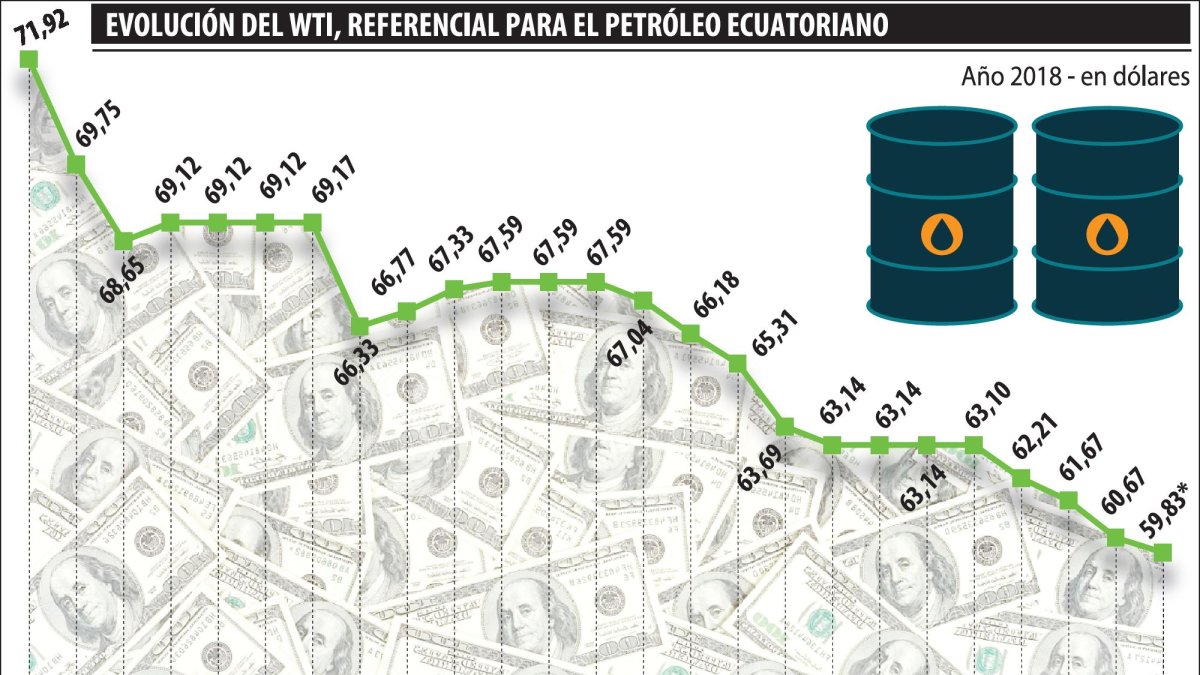Ayer el WTI, referencial para el crudo ecuatoriano, llegó hasta menos de 60 dólares el barril. La proforma se elaboró con un barril de 58,29 dólares.