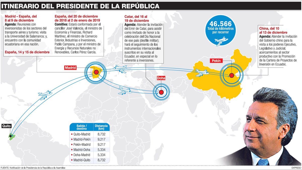 En total, Moreno estará fuera del territorio nacional hasta el 2 de enero. 25 días.