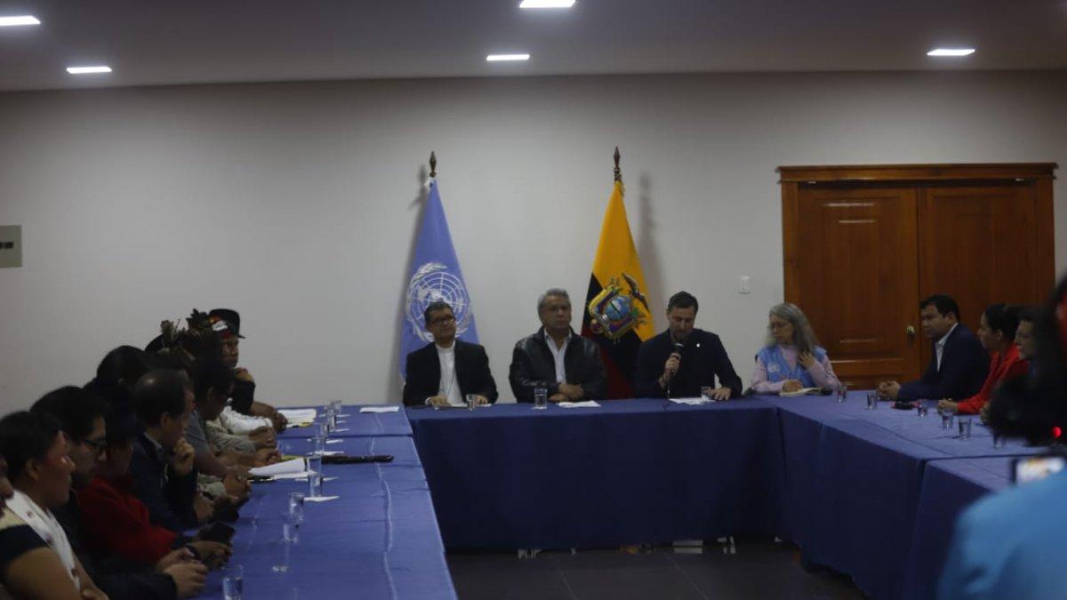 “Se establece un nuevo decreto que deja sin efecto el N° 883, para lo cual se instala una comisión que elaborará este nuevo decreto integrada por las organizaciones del movimiento indígena participantes en este diálogo y el Gobierno Nacional, con la mediación de las Nacional Unidas y la Conferencia Episcopal Ecuatoriana”, y siguió con la mención de que con este acuerdo “se terminan las movilizaciones y medidas de hecho en todo el Ecuador”.