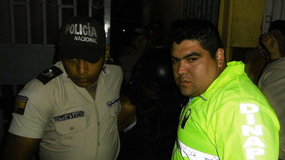 Provisto de un casco antimotines, un chaleco antibalas y en pantaloneta fue sacado a carrera Byron Jacinto Quinteros Noboa. El hombre de 44 años, conocido como Jaime fue implicado en el femicidio de su exconviviente Amada de Jesús Ruiz Briones, ocurrido el pasado 28 de junio a la entrada del recinto La Seca.