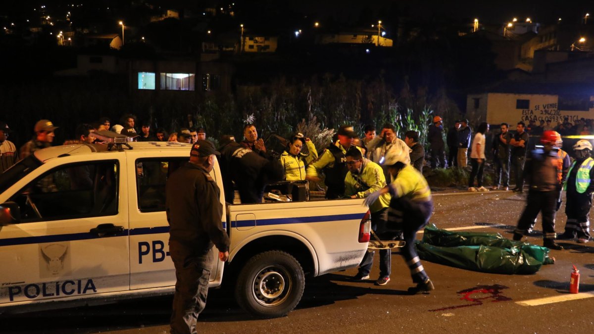 Cerca de la 01:45 y tras la alerta del ECU-911, las sirenas de las ambulancias del Ministerio de Salud, Policía Nacional y Cuerpo de Bomberos comenzaron a sonar. El sargento de los casacas rojas de Otavalo, Paúl Vaca, dijo que todos los ocupantes de un Zotye tipo Jeep color negro habían muerto de contado por la gravedad del siniestro.