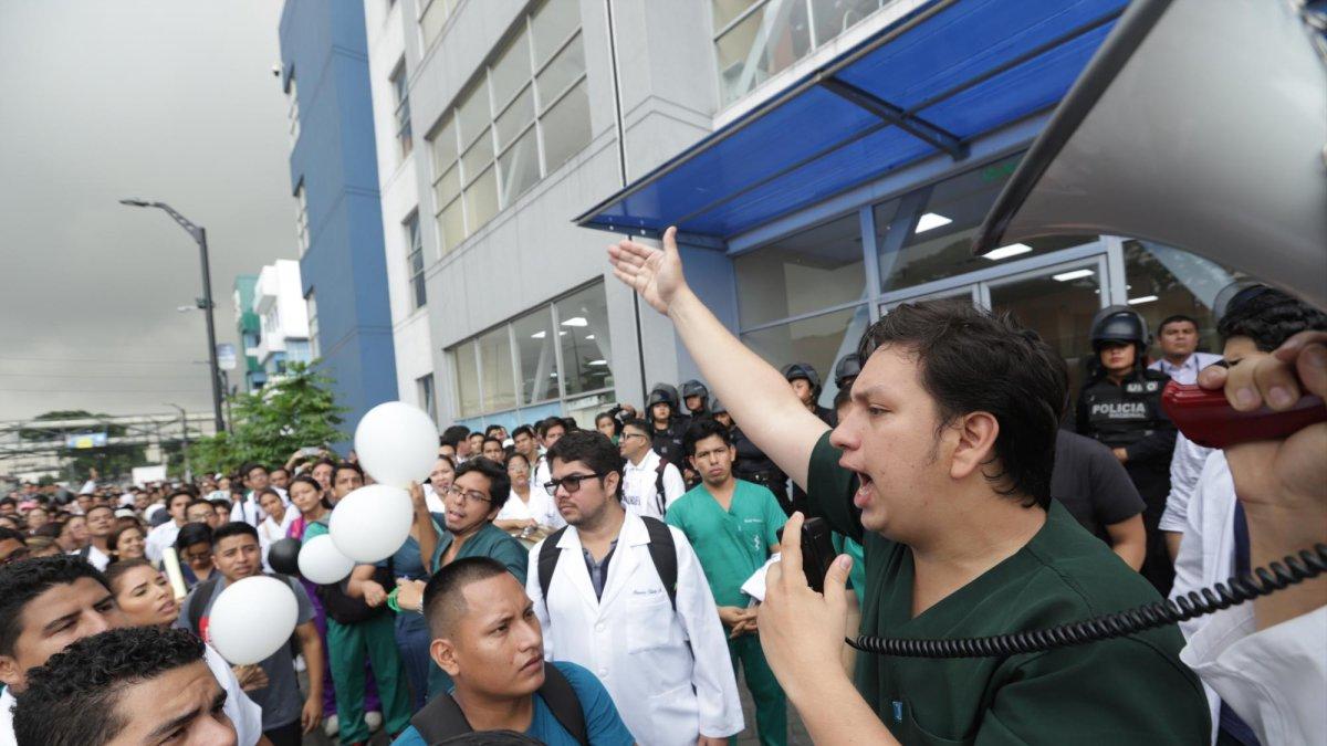 “Como internos hacemos de todo un poco: tomamos datos al paciente, tomamos las pruebas para laboratorios, pasamos visitas a los pacientes. Son 80 horas semanales de trabajo y con la reducción equivaldría a 1,25 dólares por hora”, señaló Xiomara Rivera, quien realiza su internado en el hospital Abel Gilbert Pontón, al puntualizar que se les debe reconocer lo que ellos realizan.