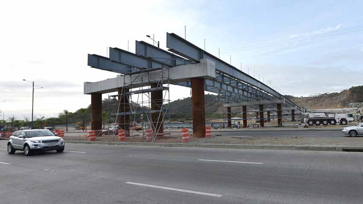 Las estructuras fueron instaladas para el paso elevado que cruzará sobre la transitada arteria y que permitirá el ingreso de los automotores de las urbanizaciones cercanas (La Joya, Villas del Rey), hacia Guayaquil.