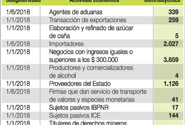 La resolución 431 que emitió en diciembre pasado el Servicio de Rentas Internas (SRI) establece que a partir de junio de este año, a nivel nacional, deberán sumarse las empresas cuyos ingresos anuales del ejercicio fiscal 2018 sean iguales o superiores a los $ 100.000 y los importadores que se dediquen a la venta local de productos. La obligatoriedad rige desde este mes para las gasolineras y para los negocios que se enfocan en la venta de carros nuevos.