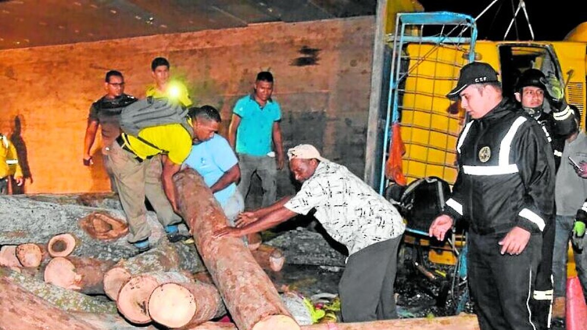 La noche caía, los minutos pasaban y la vía proseguía obstaculizada. Por el accidente, varios de los conductores que iban con destino a Los Ríos optaban por ayudar a los uniformados en las complejas labores de rescate, pues los troncos de madera, por su tamaño, dificultaban la extracción de la persona que estaba bajo ellos. ¡Pesaban una barbaridad!