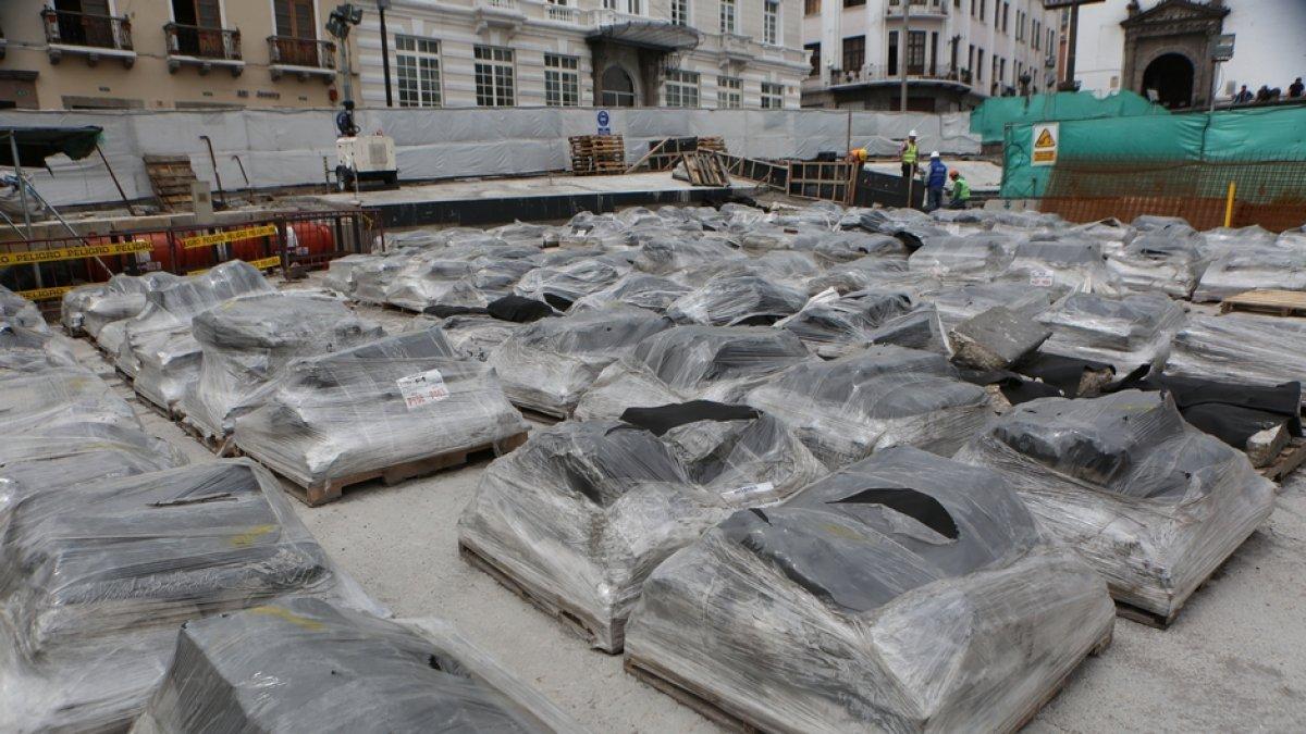 En marzo de 2016 se removieron 107.695 piezas de la Plaza de San Francisco. En ese momento las numeraron piedra por piedra y luego fueron trasladadas a una bodega del Parque Arqueológico Rumipamba.