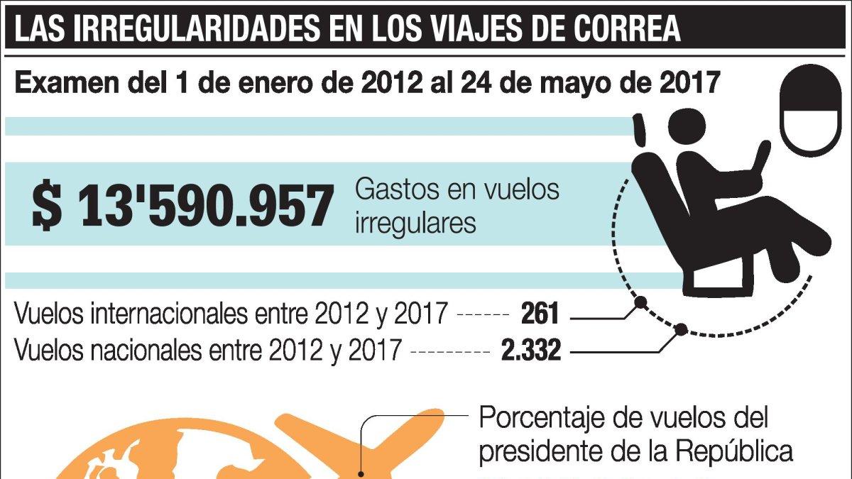 Según el equipo del expresidente Rafael Correa, los viajes se realizaron “en función de los intereses del Estado”. Las pruebas, registradas en un informe borrador de la Contraloría, muestran lo contrario.