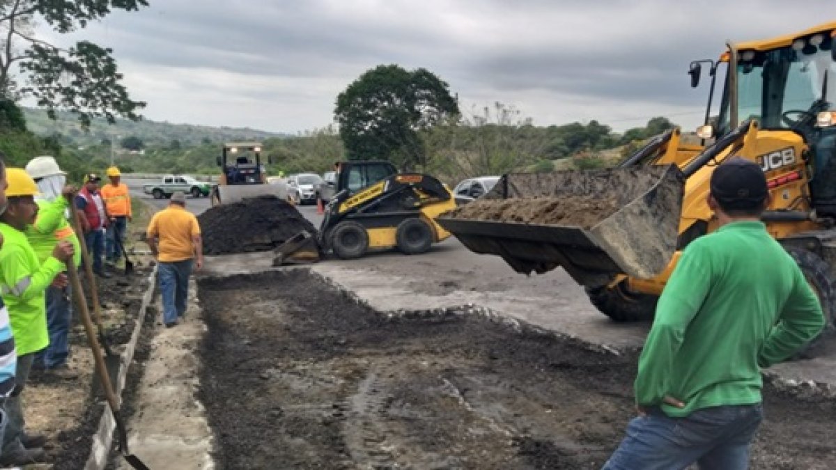 “Con apoyo de personal de la microempresa de conservación vial “La Pila”, se inició con el bacheo entre los kilómetros 36 al 38, desde el puente El Junco”, informó el Ministerio.
