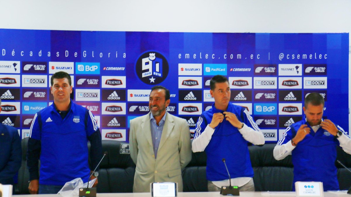 El nuevo entrenador del Club Sport Emelec, Ismael Rescalvo, fue presentando oficialmente ayer junto a su cuerpo técnico y la cúpula dirigencial del cuadro azul, encabezada por el presidente, Nassib Neme. Todo el cuerpo técnico español se enfundó la camiseta del Bombillo, misma que defenderán hasta el 2022.