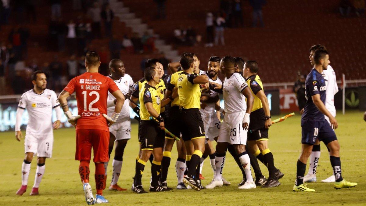 El delantero uruguayo, de Liga de Quito, fue suspendido tres meses por empujar e insultar al árbitro y tratar de agredir a un rival.