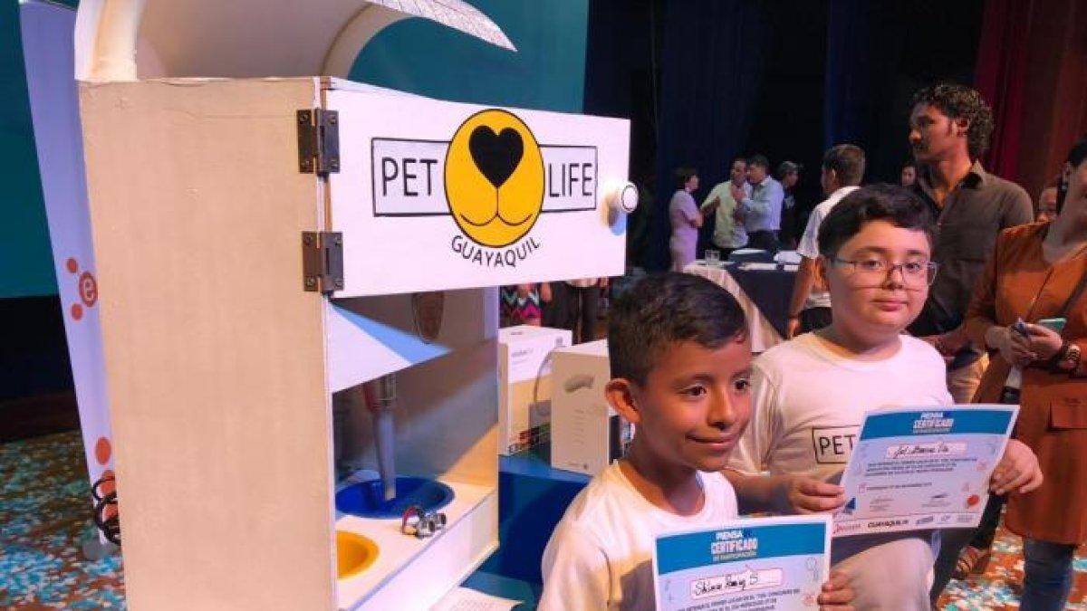 Los chicos son estudiantes de la Unidad Educativa Camilo Destruge y compitieron en el Primer Concurso de ‘Innovación Piensa In’, impulsado por la Fundación Edúcate. Pet Life fue el proyecto ganador.