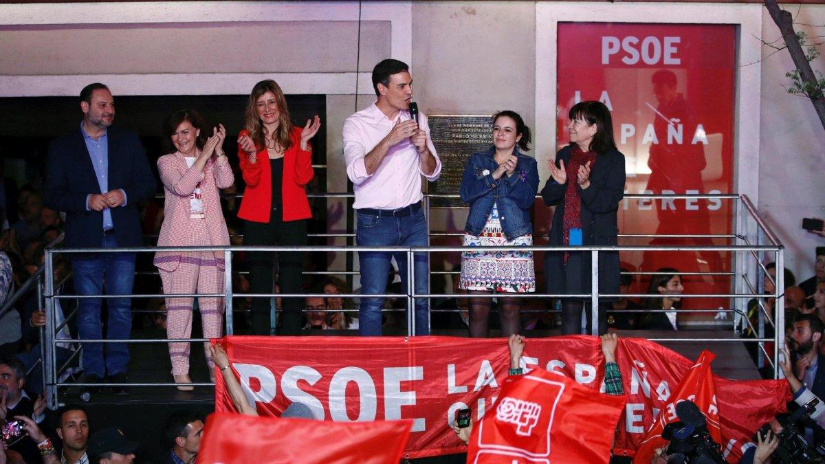 Según datos casi definitivos, el PSOE de Sánchez obtuvo 123 de los 350 escaños de la cámara baja, lejos de la mayoría absoluta, situada en 176 asientos. Un resultado que celebró en la sede del partido en Madrid, entre los aplausos y la euforia de sus simpatizantes.