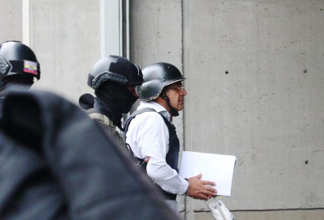 Díaz fue trasladado desde la Cárcel 4 bajo un fuerte resguardo militar. El operativo incluyó un vehículo táctico blindado, uniformados con armas largas, chalecos antibalas y casco. El exlegislador descendió esposado y portando una carpeta con aproximadamente 200 páginas.