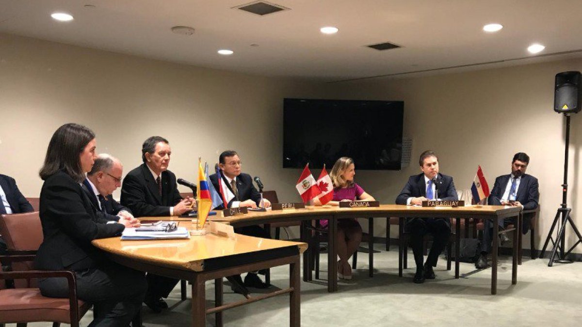 Los cancilleres de Argentina, Chile, Colombia, Paraguay, Perú y Canadá presentaron en los márgenes de la Asamblea General de la ONU una carta sellada ayer por los líderes de sus respectivos países solicitando la intervención de la Corte con sede en La Haya.
