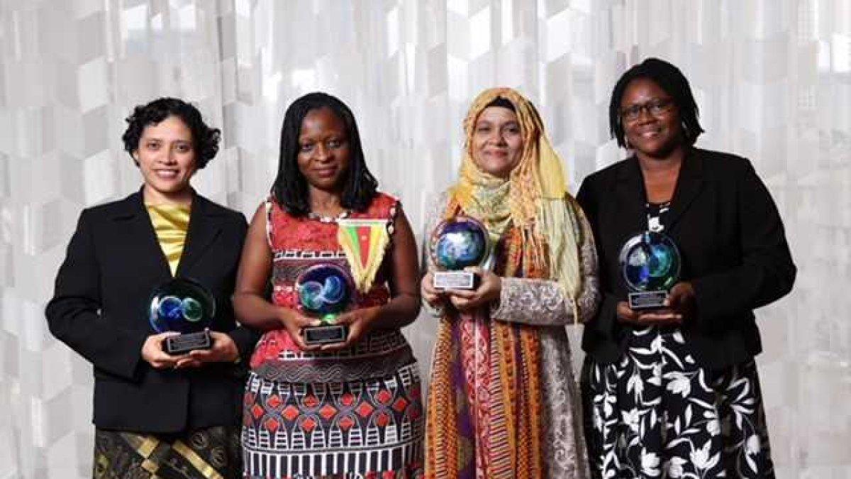 Junto a tres de las cinco científicas (de Bangladesh, Camerún. Guyana e Indonesia) que recibieron el premio.