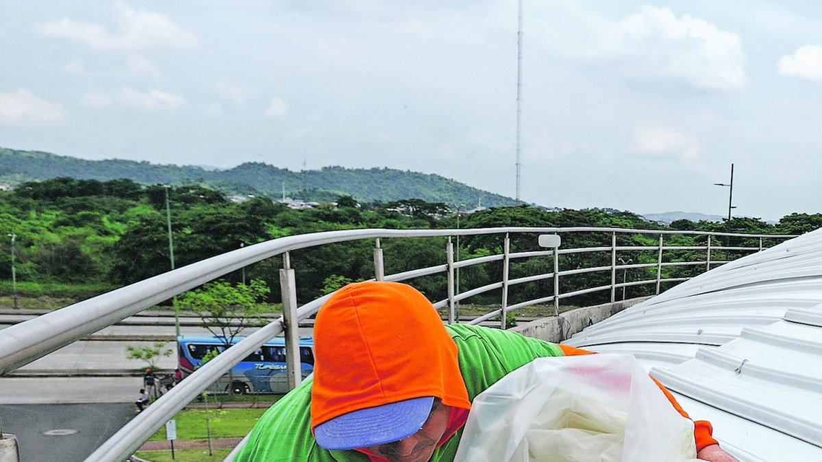 “La arquitecta Ingrid Rojas, de Inmobiliar, me encargó una inspección para evaluar la situación. Colocamos un protector provisional hasta que definan si se debe cambiar toda la cubierta o solo se reemplazarán las planchas de policarbonato que están dañadas. Allí hay falta de mantenimiento, de pronto a algunas planchas le pusieron diluyente para limpiarlas y eso provocó que el sol las agriete”, explicó el ingeniero Manuel Pincay, contratista particular que lideró la cuadrilla.
