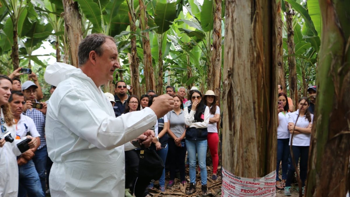 Dos expertos de Sudáfrica comparten con ecuatorianos sus experiencias sobre el manejo de la plaga Fusarium Raza 4 Tropical (Foc R4T), el hongo que amenaza a las plantaciones de Ecuador y la región. La visita fue gestionada por autoridades de la Agencia de Regulación y Control Fito y Zoosanitario (Agrocalidad), con apoyo de la Cooperación Técnica Alemana (GIZ).