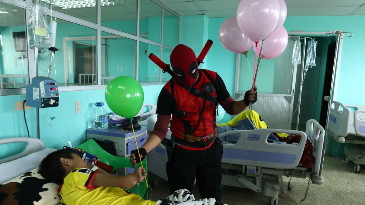 El doctor Miguel Rivas, uno de ellos y quien hace poco inició su posgrado en Pediatría en el lugar, se transforma en Deadpool y ya con sus espadas puestas sobre la espalda, espera (escondido en una de las oficinas administrativas) a que sus compañeros, la mayoría jefes de área, se alisten para empezar a recorrer los pasillos que los conducen a las salas de hospitalización infantil.
