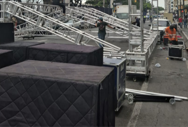 Tarima para marcha en apoyo a Aquiles Álvarez es desmontada