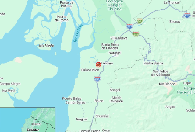El epicentro fue localizado a 11.01 km al sureste de la localidad de Naranjal, en la provincia de Guayas, con coordenadas geográficas de 2.727° S de latitud y 79.703° W de longitud. A pesar de su intensidad moderada, el temblor no causó víctimas ni daños materiales significativos hasta el momento.