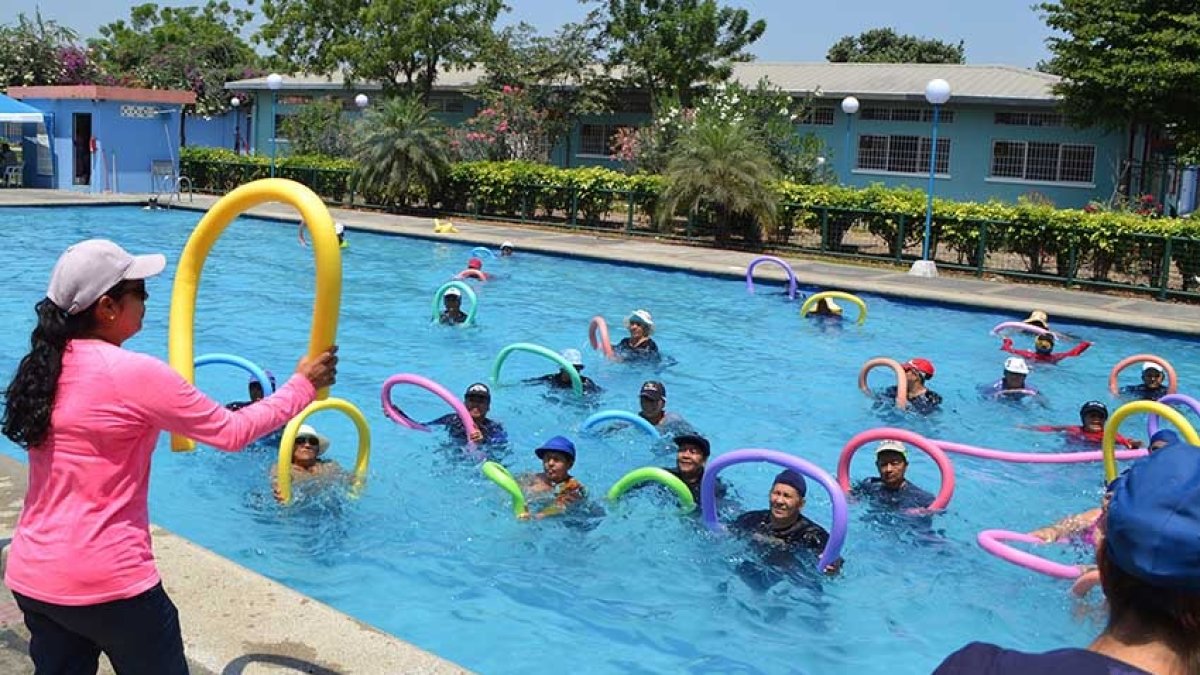 Con flotadores en sus manos, 40 adultos mayores ingresaron a la piscina del centro polifuncional municipal Zumar, ubicado en Bastión Popular, para someterse a rehabilitación física o para recibir terapias acuáticas con las cuales se tratan distintas patologías.