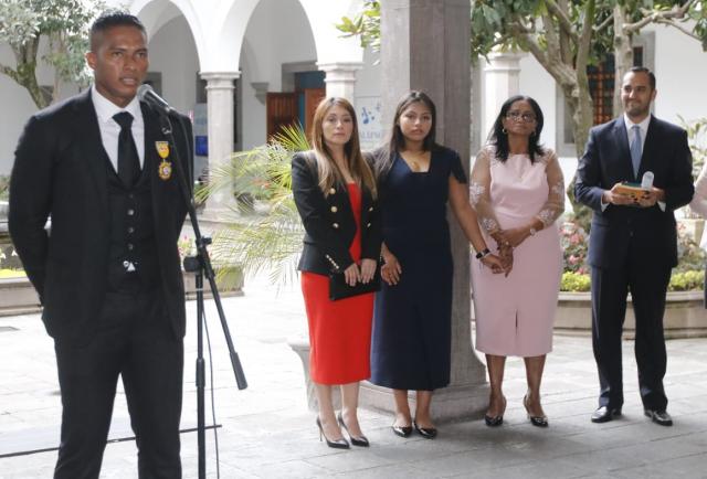 Acompañado de su esposa Zoila, su hija Doménica y su padres Teresa y Luis, Antonio Valencia recibió la orden nacional al mérito en el grado de oficial por parte del presidente Lenín Moreno.